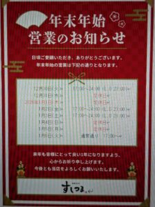 年末年始の営業時間のお知らせです